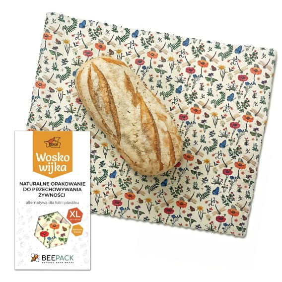 Jesteś miłośnikiem ekologicznego stylu życia i designu? Woskowijka w rozmiarze 40x48 cm to idealny wybór dla Ciebie! To designerskie i funkcjonalne opakowanie do żywności - alternatywa dla plastikowych torebek i folii spożywczej/aluminiowej. Owiniesz nią zarówno pieczywo, ciasta, jak i duże warzywa czy owoce, przykryjesz półmiski, talerze z jedzeniem i miski z sałatkami. Woskowijka XL została stworzona przez nas na bazie tkaniny bawełnianej, pokrytej specjalną mieszanką wosku pszczelego, żywicy sosnowej i oleju jojoba.