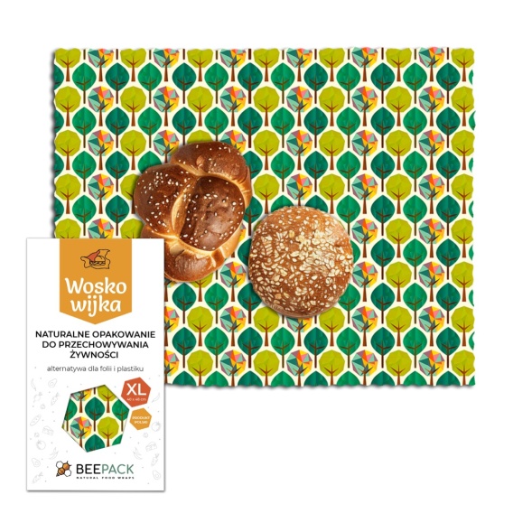 Jesteś miłośnikiem ekologicznego stylu życia i designu? Woskowijka w rozmiarze 40x48 cm to idealny wybór dla Ciebie! To designerskie i funkcjonalne opakowanie do żywności - alternatywa dla plastikowych torebek i folii spożywczej/aluminiowej. Owiniesz nią zarówno pieczywo, ciasta, jak i duże warzywa czy owoce, przykryjesz półmiski, talerze z jedzeniem i miski z sałatkami. Woskowijka XL została stworzona przez nas na bazie tkaniny bawełnianej, pokrytej specjalną mieszanką wosku pszczelego, żywicy sosnowej i oleju jojoba.