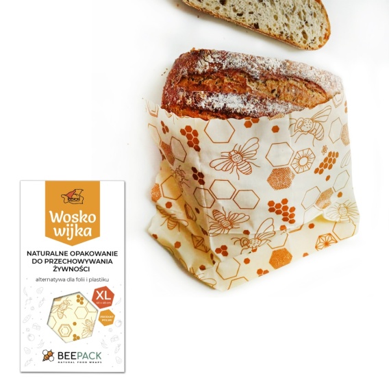 Jesteś miłośnikiem ekologicznego stylu życia i designu? Woskowijka w rozmiarze 40x48 cm to idealny wybór dla Ciebie! To designerskie i funkcjonalne opakowanie do żywności - alternatywa dla plastikowych torebek i folii spożywczej/aluminiowej. Owiniesz nią zarówno pieczywo, ciasta, jak i duże warzywa czy owoce, przykryjesz półmiski, talerze z jedzeniem i miski z sałatkami. Woskowijka XL została stworzona przez nas na bazie tkaniny bawełnianej, pokrytej specjalną mieszanką wosku pszczelego, żywicy sosnowej i oleju jojoba.