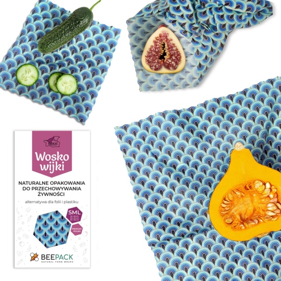 Zestaw woskowijek w rozmiarach SML: Small, Medium i Large pozwolą przechowywać zarówno produkty w lodówce, jak i bułki, chleb czy przekąski poza nią. Można przykryć nimi miski z sałatkami, naczynia z jedzeniem z obiadu, czy zamrozić kawałek pasztetu lub pierogi. Formuła woskowijek jest oparta o wosk pszczeli i żywicę drzewną, co zapewni dłuższą świeżość żywności - dzięki czemu mniej jej zmarnujemy.